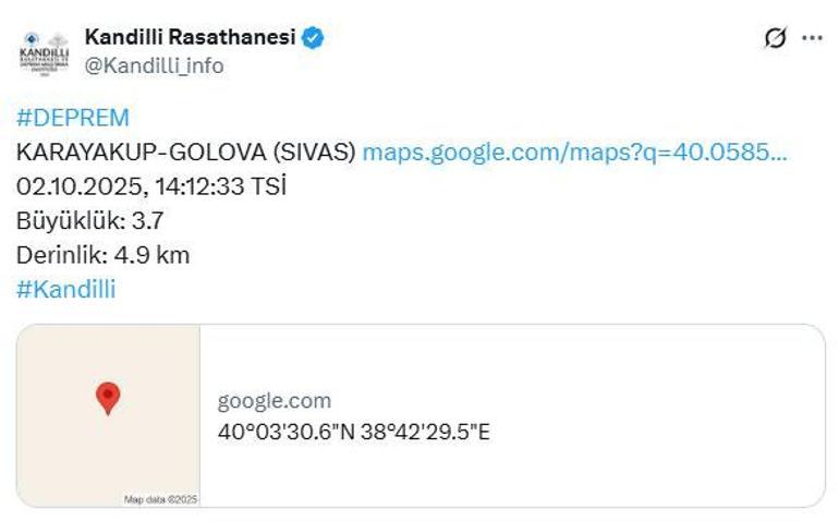 Son dakika… Sivas’ta 3.7 büyüklüğünde deprem